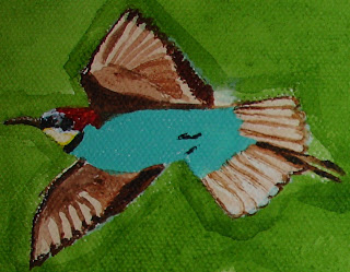 I painted this miniature painting over two days, for our local art group's Christmas break up dinner's lucky dip type swap: